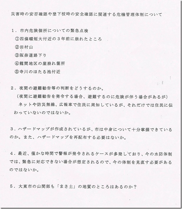 広島県北部の土砂災害を受け、大東市議会未来づくり委員会(常任委員会)が委員会を開催しました。