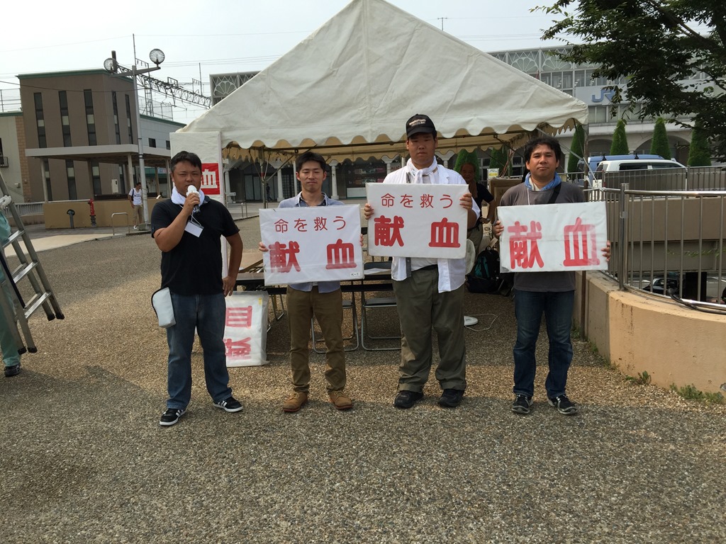 猛暑の中、青年局が献血運動を行いました。