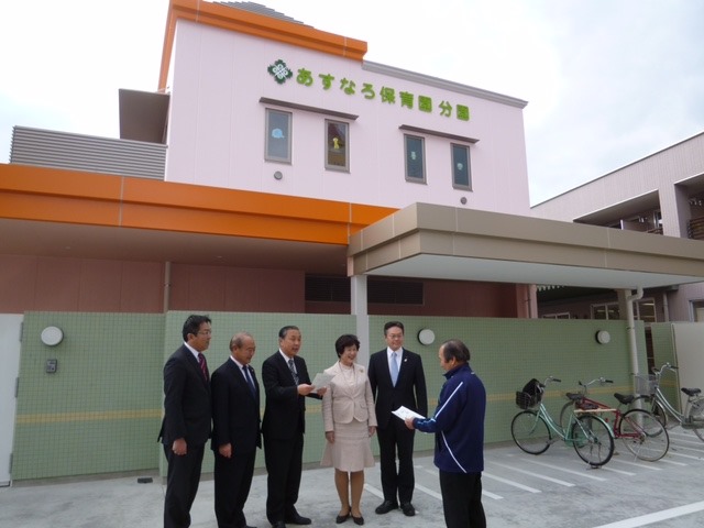 大東市として新たな保育事業を展開する病児.病後児保育並びに一時預かり、そして保育ステーション送迎保育の一体的運営を行うあすなろ保育園分園を大東市公明党議員団で視察しました。あすなろ保育園は昭和48年に開園され42年間の経営実績のある保育園です。そのすぐ近くで分園を開園しますが、住道駅が程近い場所で真新しい園舎で0才から2才児までの42名が定員の保育と6名を預かる事が出来る病児.病後児保育を12月よりスタートされます。現在大東市では、認定子ども園が2園(来年がもう1園増園)開園しており、この度の追園で待機児童が大幅に解消されます。特に保育士の人数が必要な0才から2才児は保育ニーズが高く子育て世帯にとって朗報です。また、さらに駅前ステーション送迎を行う拠点としての機能を併せ持つ施設となります。こちらから28人が乗車可能なトールワゴン車で様々な園に送迎します。お迎えが遅くなっても待機出来る部屋で安心して保護者を待つ事が出来ます。これまで公明党として待機児童ゼロ対策を病児.病後児保育、ステーション送迎保育など今回の内容を含め具体的な形で訴えて参りました.
