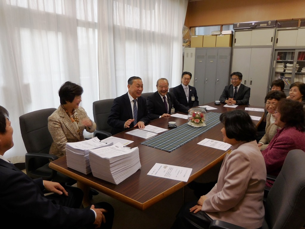 福祉と教育の街を推進する会(樋口一義 代表)と大東市公明党議員団(寺坂修一幹事長)大谷真司議員、大束真司議員、酒井一樹議員、は多機能型防犯カメラの設置を求める署名を東坂大東市長に提出しました。これには、内海久子府会議員も同席。