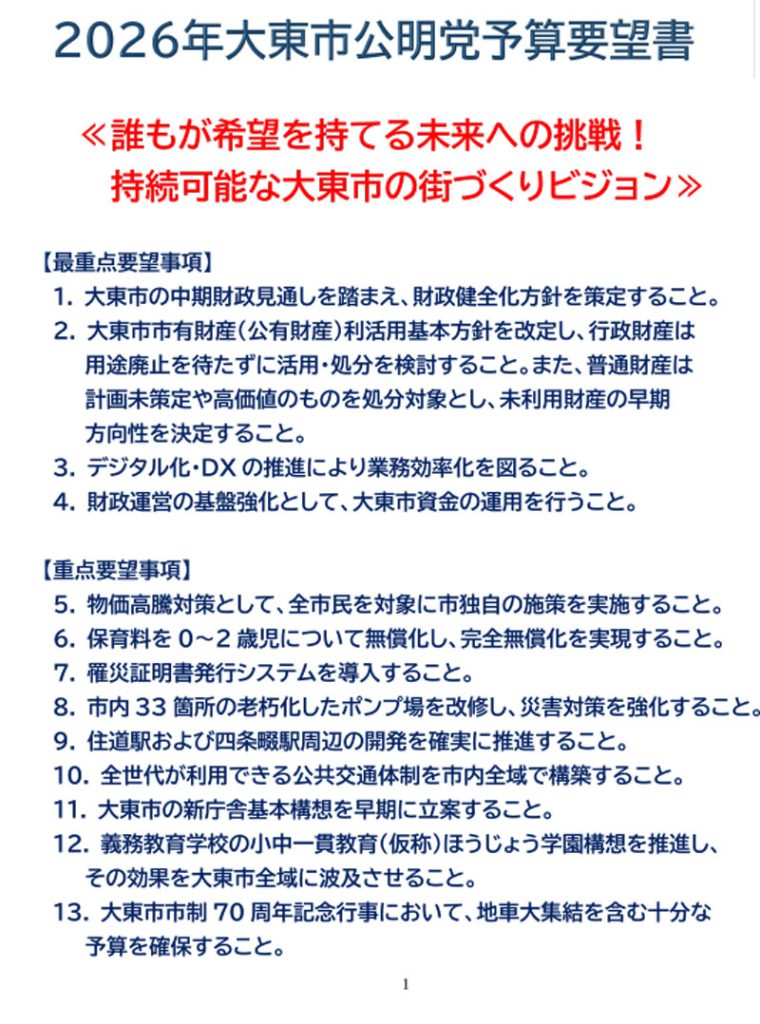 「2026年度 公明党予算要望書」と
