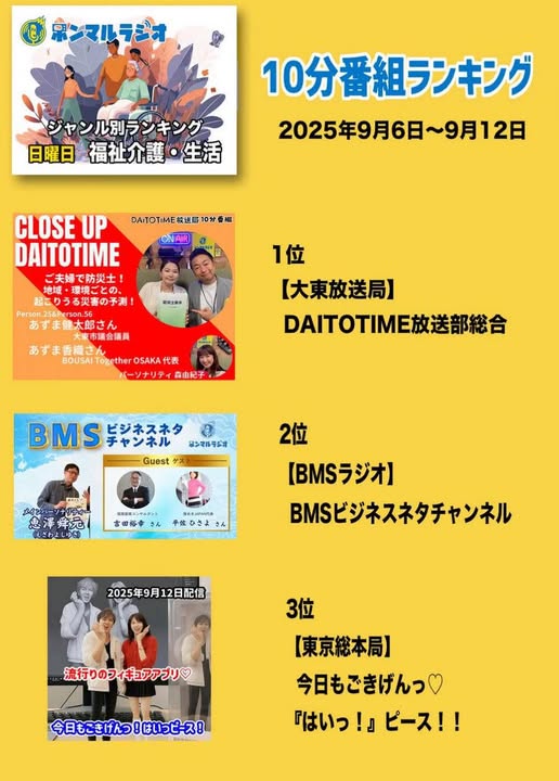 私たち夫婦が出演した地域密着ネットラジオ「ダイトウタイム放送局」さんのホンマルラジオが、多くの方に聴いていただきランキング1位となりました❗️いつも本当にありがとうございます😊