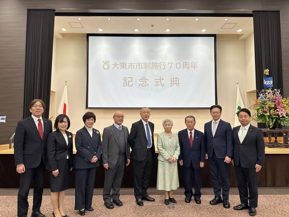 式典では、市民のうた合唱や記念映像の上映、また長年にわたりご尽力いただいた方々への表彰を通じて、大東市の歩みと歴史の重みを改めて感じる機会となりました。