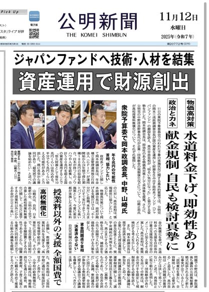 本日の公明新聞一面には昨日高市首相に質問を行なった岡本みつなり政調会長の内容が掲載されました。
