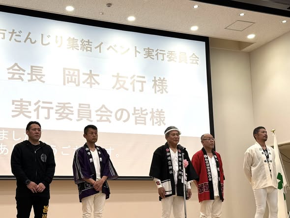 最後に70周年記念行事の目玉である本年11月8日に開催が予定されています『大東だんじり大集結』の広報に、保存会の代表が登壇され、岡本会長が大東だんじりの歴史と大集結の意義についてお話しいただきました。