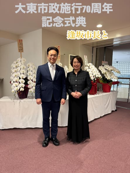私共も諸先輩の造られた様々な街づくりのハード、ソフト両面に渡る仕組みや制度を更にブラッシュアップし、「選ばれる街」として住み良い大東市を止まることなく進めていく決意をあらためて深めさせていただきました式典となりました。