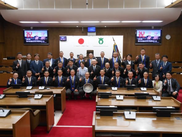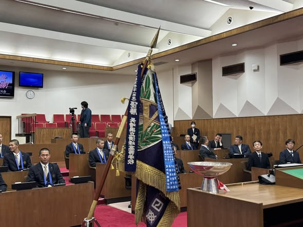 最初に議場で西谷監督よりご挨拶があり、接戦の連続を制しました優勝までの道のりをお話しくださいました。