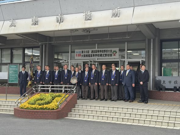 本日は、選抜高校野球大会で全国優勝を致しました大阪桐蔭高校野球部の皆さんが、大東市に優勝報告にお越しくださいました。