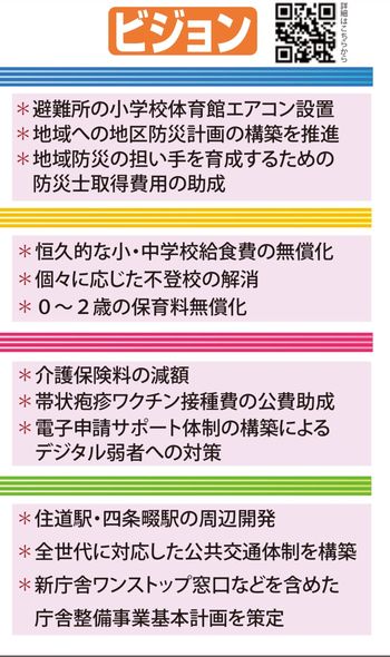 私共の選挙公約が随所に盛り込まれており、特に小中学校給食の恒久的無償化や、帯状疱疹ワクチンの助成、地区防災計画の推進、防災士の取得助成、住道駅周辺整備など明確な答弁を頂きました。