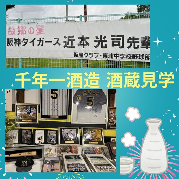 帰路の途中で立ち寄った淡路市の千年一酒造さんは、阪神タイガースの近本選手の地元にあり、店内にも近本選手の記念グッズがたくさん展示されていました。